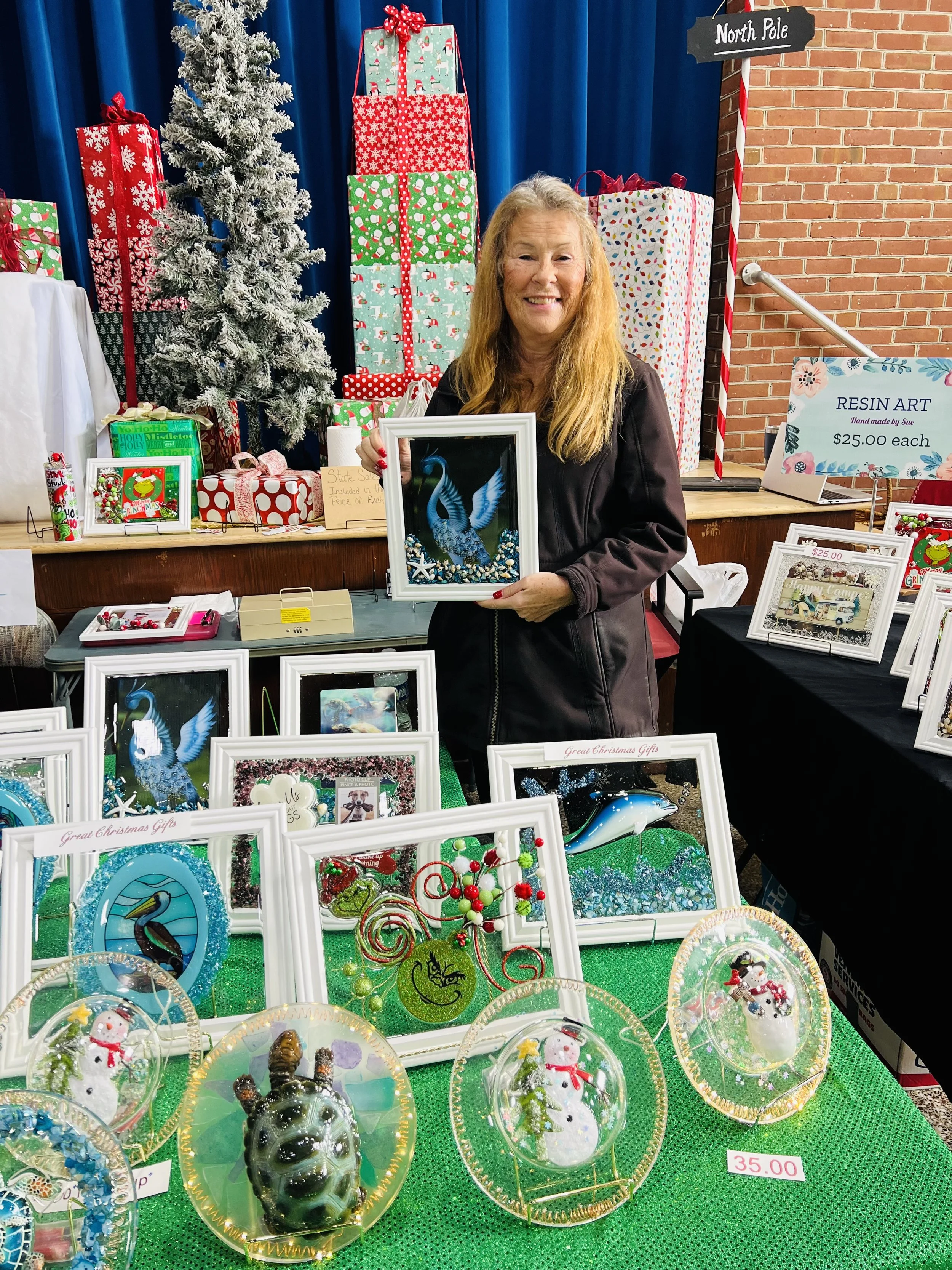 Sue’s Creative Touches will feature one of a kind resin art picture frames.